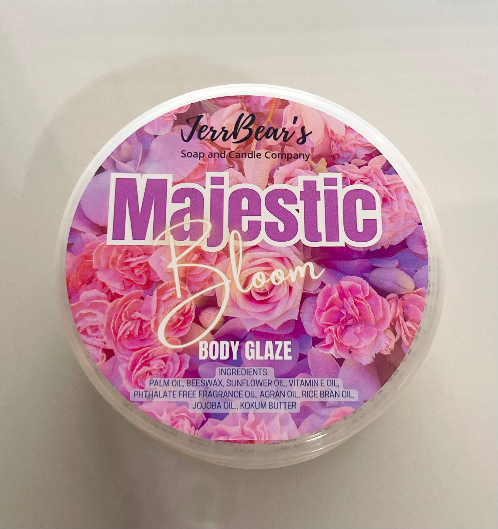 Presentamos nuestro lujoso Majestic Bloom. Este baño corporal, elaborado con ingredientes totalmente naturales como aceite de palma, cera de abejas y aceite de vitamina E, dejará tu piel suave y nutrida. Elaborado artesanalmente en Texas, este producto viral incluye una mezcla de aceites aromáticos como el de argán y el de jojoba para una experiencia placentera.