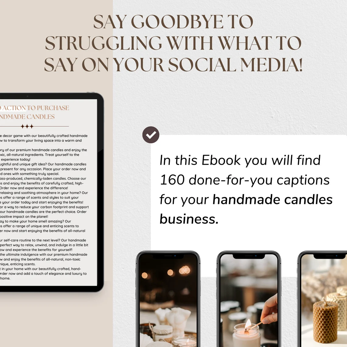 • You will receive a pdf file with total of 160 Handmade Candles Social Media Captions
